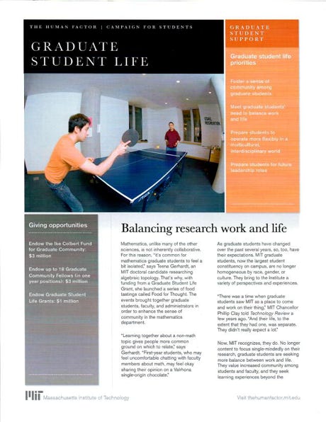 “There was a time when graduate students saw MIT as a place to come and work on their thing,” MIT Chancellor Philip Clay told Technology Review, a few years ago. “And their life, to the extent that they had one, was separate. They didn’t really expect a lot.”