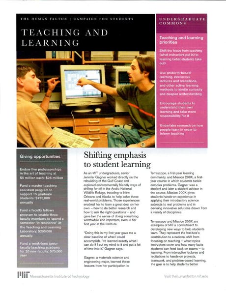 Gifts that support innovative teaching at MIT are instrumental in helping Institute students learn better so that they can have the communications and analytical skills, problem-solving abilities, and understanding of science and technology to be the leaders of the 21st century.